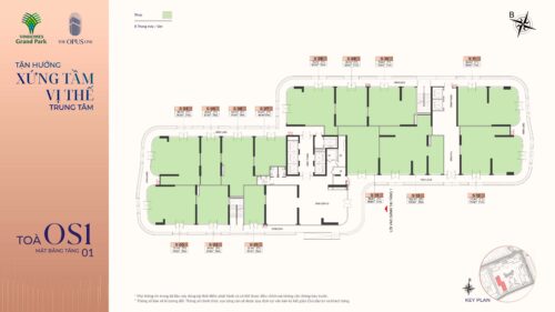 The Opus One với quy mô tổng diện tích 23.098m2 gồm 4 toà, 1952 căn hộđa dạng loại hình từ Studio – 3 phòng ngủ