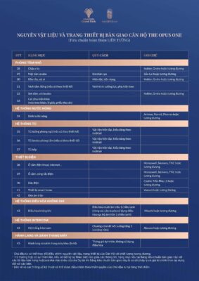 Tiêu chuẩn bàn giao: tất cả các căn hộ đều được trang bị công nghệ Smart Home và bàn giao liền tường, với trang thiết bị nội thất đến từ các thương hiệu hàng đầu thế giới, như Dessmann, Hafele, Gorenji, Kohler, Grohe, Rosieres…
